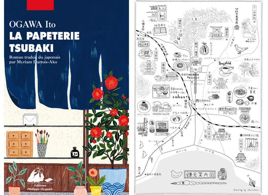 When we travel, we enjoy remembering movies or books we like. Ito Ogawa wrote this charming story called “Tsubaki Bunguten” (La papeterie Tsubaki). It tells the everyday life of a young woman living in Kamakura and working as a public writer. The first page of the book is a lovely hand drawn map that we will take with us during our trip. We hope people do the same with our books Onibi and Tokyo Mystery Café which have maps to find places that inspired the story.